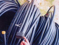| Une sonde géothermique verticale est utilisée pour aller puiser l'énergie de la terre. Cette solution est utilisée en cas de manque de place. L'avantage des sondes verticales profondes par rapport aux collecteurs horizontaux à faible profondeur sont : leur faible emprise au sol qui favorise n'importe quel aménagement de terrain |